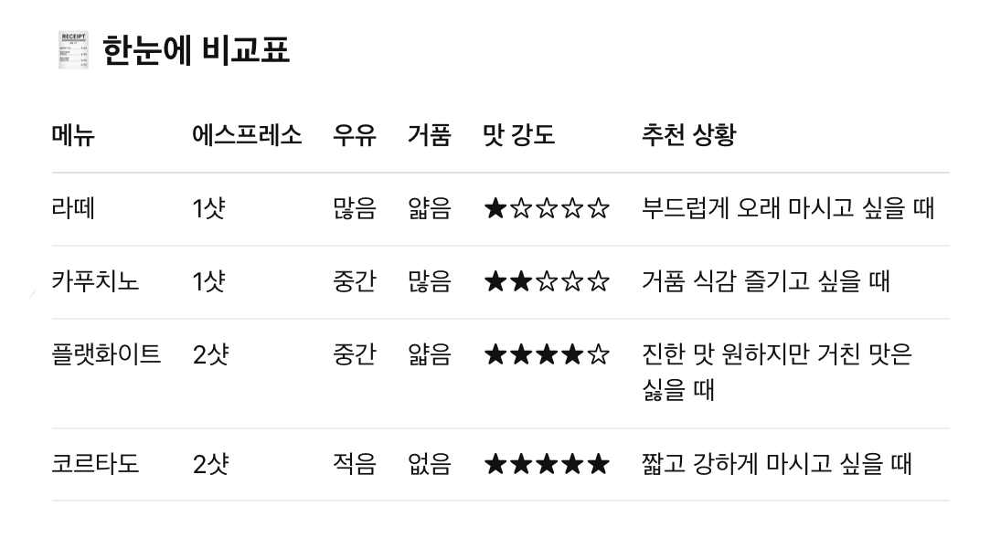 우유 커피를 고를 땐 이제 어려운 이름을 외우려고 하기보다 내가 원하는 맛의 방향을 먼저 떠올려보자.